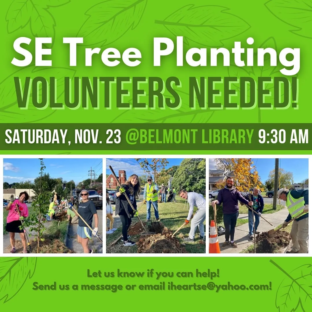Volunteers needed Saturday 11/23! Can you help us plant trees in SE? We will meet at Belmont Branch Library at 9:30am.