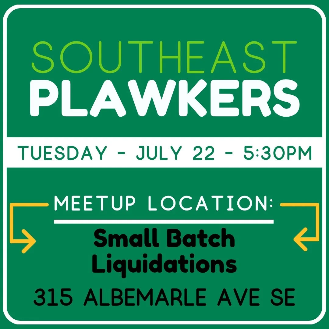 Meet the Plawkers on Tuesday, July 22, 5:30pm at Small Batch Liquidations—315 Albemarle Ave SE!